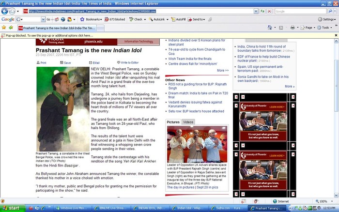 Prashant Tamang is the new Indian Idol 23 Sep 2007, 2206 hrs IST,PTI Print Save EMail Write to Editor