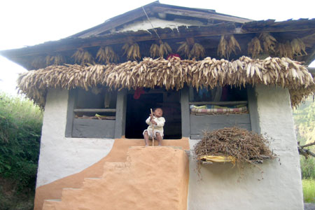 मकै हेर्दा त मुखियाको घर होला जस्तो लाग्यो तर भटमास सुकाएको देख्दा चाहिँ होइन कि जस्तो लाग्यो।