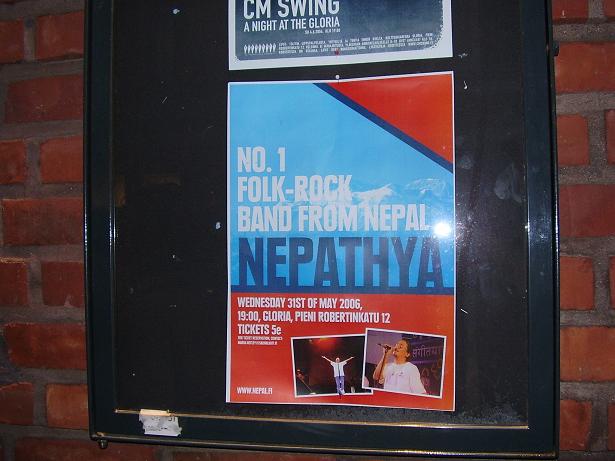 Hi guys, Nepathya totally rocked whole Finland in World Village Festival in Helsinki but unfortunately I could not be there, however luckily I took a FANTASTIC cruise to Helsinki to have great time in another concert by fav band NEPATHYA on 31 May, it was mainly organised for the Nepalis but was total sold out with KHAIREs n even many Indinas n Pakis. Despite being my 5th trip to Helsinki, I personally discovered some areas of it so pasted some pics of HELSINKI as well. Hope u will find it interesting. All the photos r taken by me. I could have sent as an album to SAJHA but preferred this one coz I can explain the scenarion better with some captions. ------ Note: There r very few Nepalis in Finland, hardly 200. --------- Before the show begins, u could see such posters in main areas of Helsinki